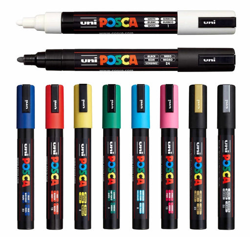 Uni POSCA PC-5M Poster Coloured Markers are made using a non-toxic, water based formula which produces dense, vibrant colours on a variety of surfa...