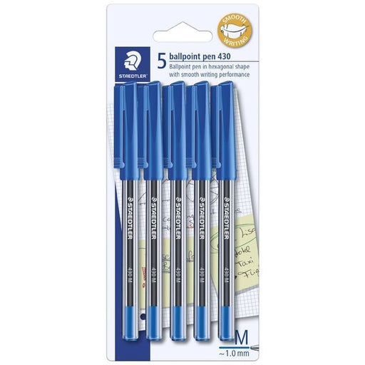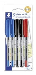 5 pack ballpoint, hexagonal shape pens, 1 red, 2 blue, 2 black